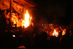 鵜の瀬でも護摩が焚かれます。 参拝者の松明をここで燃やします。 |