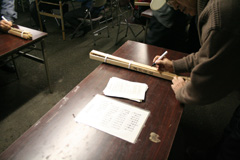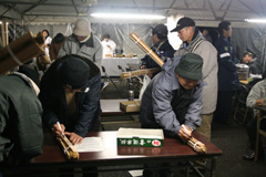 参加者は松明に願い事を書き入れます。(松明 1000円でした) | ||