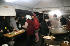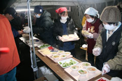 帰り道では地元婦人会?の 無料のかす汁と甘酒がふるまわれていました。(おいしかった) |