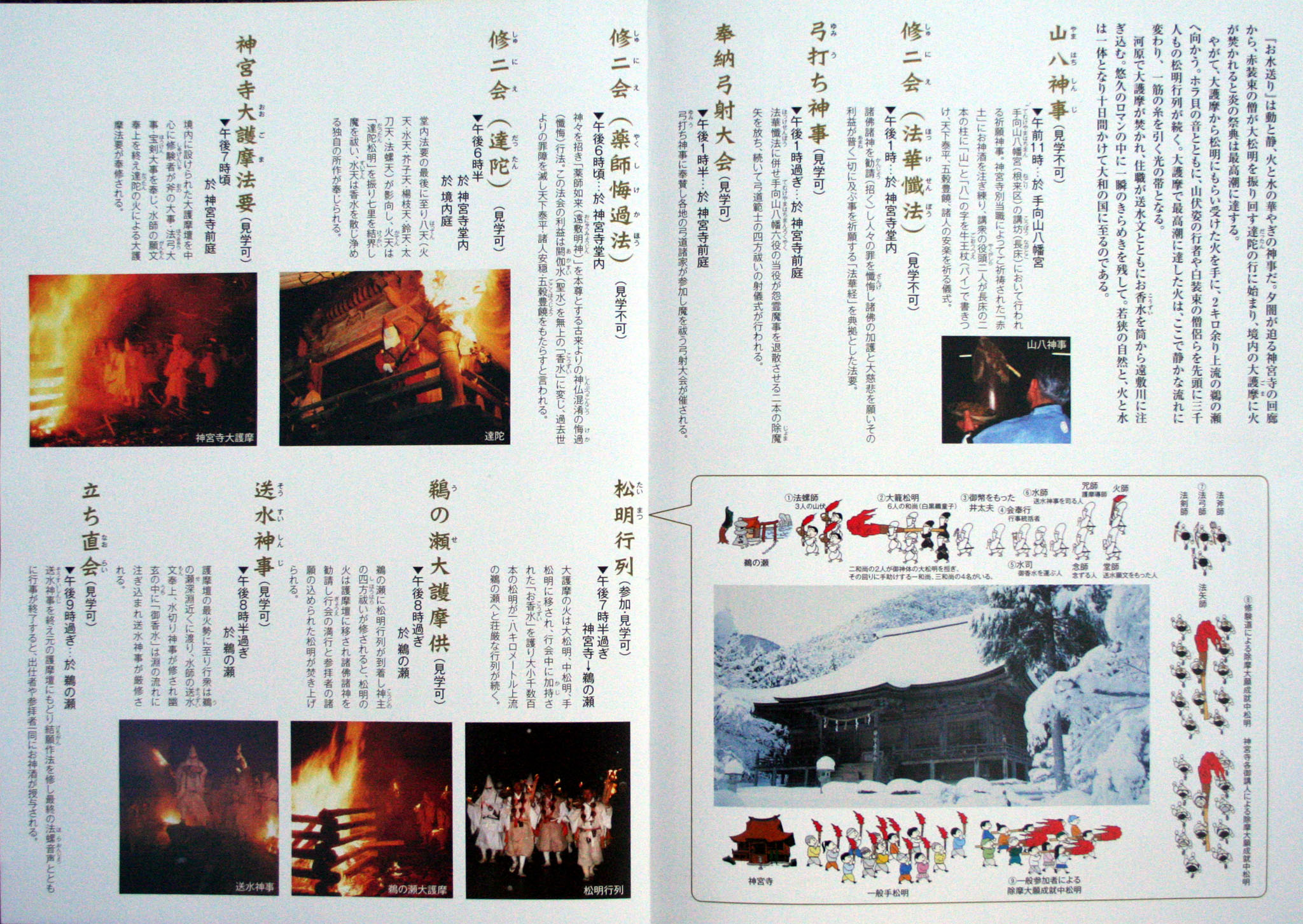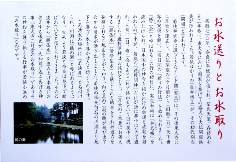 お水送りの由来等、パンフレットの解説>> お水送りの神事進行>> | ||