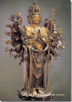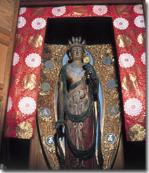 霊峰・多田ヶ岳の麓、桜並木の参道より山門をくぐり、境内の静寂はしばし世俗を離れさせてくれます。 若狭における最古の建造物である本堂は、寄棟造り檜皮葺で、安置されている木造千手観音菩薩立像(重文)の表情には安らぎを覚えます。 木造千手観音菩薩立像(重文) 平安時代、像高176.3cm。通形の千手観音像とは甚だ形の異なる像で、真面の左脇耳後に狗牙上出の面、右脇の耳後に菩薩面を大きくあらわす、いわゆる三面千手観音像です。千手観音像は通常、頭上に11面の化仏をいただきますが、この像は真面脇面を合わせると総計24面にもなる珍しい像です。このような像は、空海請来の原図胎蔵界曼荼羅に載せられている27面千手観音像に倣って造られたもので、その一変形とみてよいようです。この種の像としては、地方においては本像のみです。 |