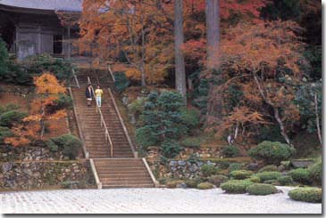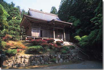 秋の山もみじの朱が、枯山水の庭園に見事に映え、訪れる人たちの目をなごませてくれます。 春はつつじが見もので、四季を通じ自然があふれています。 本尊・木造阿弥陀如来坐像(重文)や絹本著色弥勒菩薩図像は見応え十分。 |