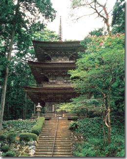 うっそうと繁った杉木立に囲まれて、ひっそりと木洩れ日を浴びながら、しかも威風堂々としてたたずむ国宝の本堂と三重塔をもつ明通寺。JR小浜駅から7.5km離れた、松永川の上流、カジカの声がする幽谷にあり、藤原時代の仏像4体は、重要文化財に指定されています。 | |||